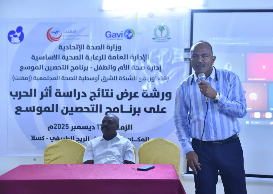 استعرض برنامج التحصين الموسع بوزارة الصحة الاتحادية اليوم بقاعة الريح الطريفي بمدينة كسلا، عبر ورشة نتائج دراسة اثر الحرب على البرنامج.