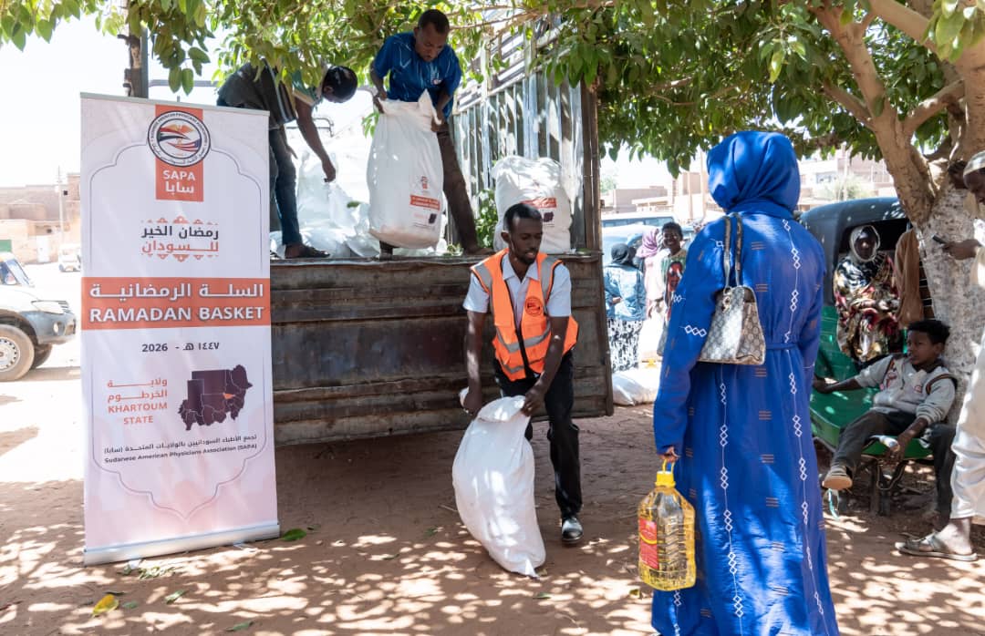 في إطار جهود دعم الأسر المتعففة خلال شهر رمضان المبارك، قام تجمع الأطباء السودانيين بأمريكا (سابا) اليوم بتوزيع 240 سلة رمضانية في أم درمان – محلية كرري – الحارة 18.