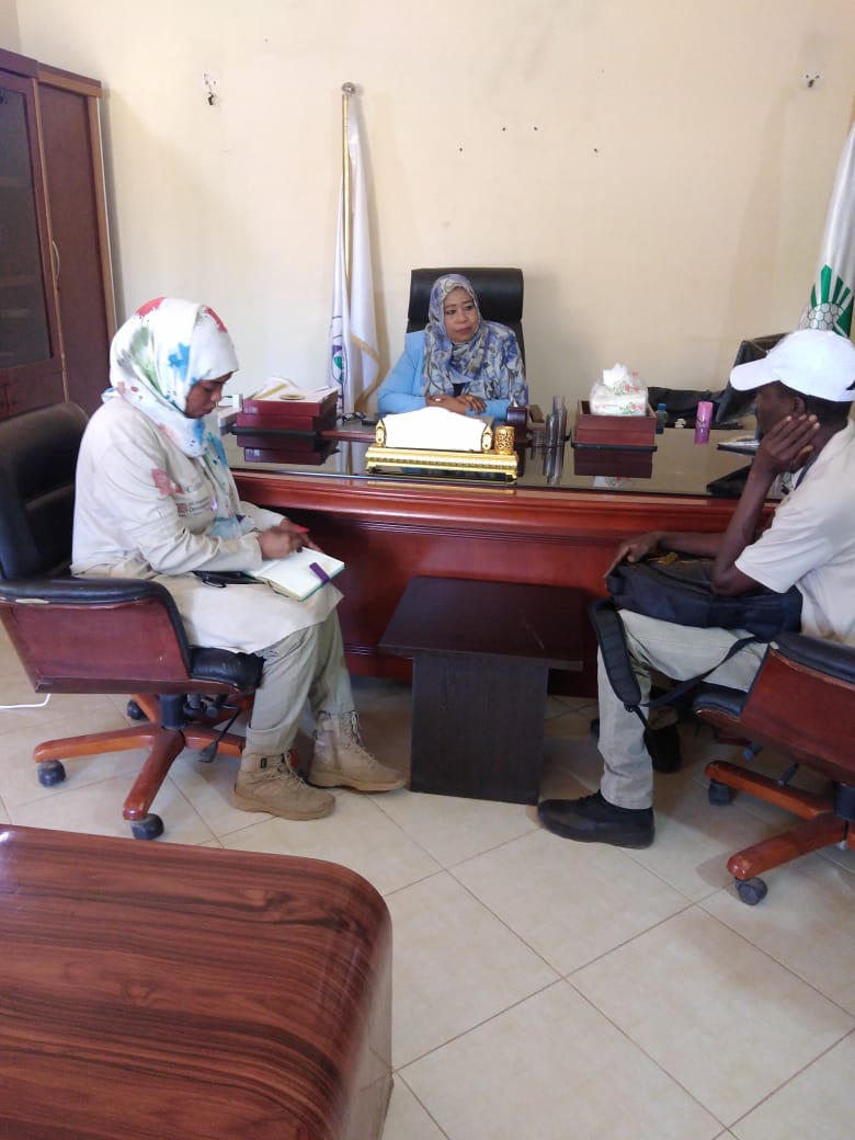 التقي آلامين العام للمجلس الأعلى للبيئة والترقية الحضرية والريفية ولاية الخرطوم الأستاذة غادة حسين العوض اليوم بمكتبها بمنطقة الطائف تيم ضباط الاتصال المجتمعي بمنظمة جاسمار ضابط اسلام متوكل وضابط غانم كمال وذلك لبحث الشراكة والتعاون بين المركز ومجلس البيئة لتوعية المواطنين بمخاطر الالغام والتخلص من النفايات وطرق التعامل مع مخلفات الحرب بحضور مدراء الادارات العامة للمجلس.