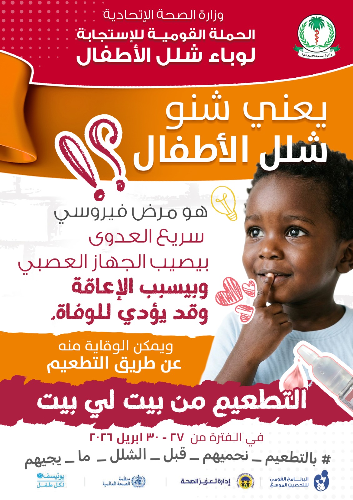 وزارة الصحة الاتحادية : اكتمال الاستعدادات لإنطلاق حملة الاستجابة لوباء شلل الأطفال في 7 ولايات والتطعيم بلقاح الحصبة والحصبة الألمانية بشمال كردفان.