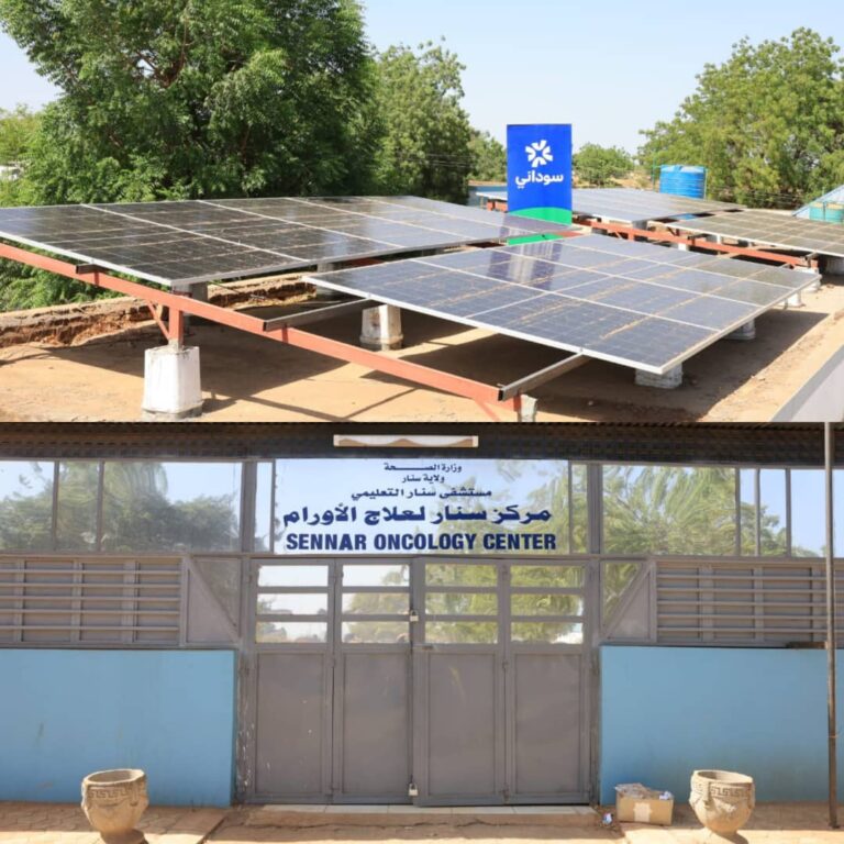 في إطار تعزيز برامج المسؤولية المجتمعية ودعم الجهود الإنسانية التي تهدف إلى تقديم خدمات طبية أفضل للمرضى .. أعلنت شركة (سوداني) للاتصالات ممثلة في قسم المسؤولية المجتمعية – عن تنفيذ مشروع مهم لدعم مركز الأورام بولاية سنار، وذلك عبر تركيب منظومة طاقة شمسية متكاملة ساهمت في معالجة مشكلة انقطاع التيار الكهربائي وضمان استمرارية تشغيل الأجهزة الطبية الحيوية بالمركز.